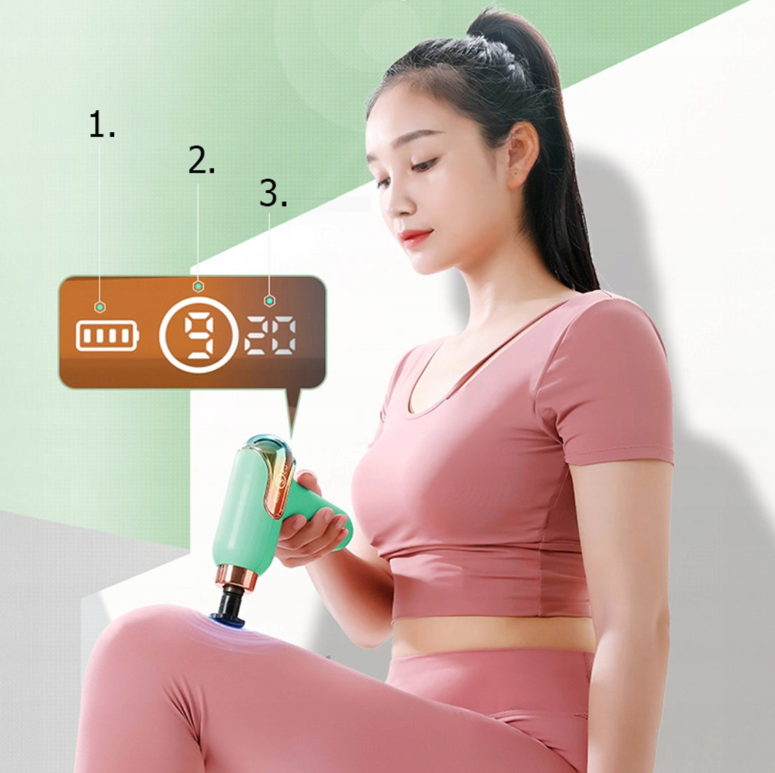 Unsere Massagepistole ermöglicht es Ihnen, Entspannung und Linderung der Muskeln überall und jederzeit zu genießen. Dank der kompakten Größe und des ergonomischen Designs können Sie die Massage sogar im eigenen Zuhause, im Büro oder im Urlaub durchführen. Jetzt ist Entspannung immer in Reichweite Ihrer Hände! Die Massagepistole ist mit vier verschiedenen Massageköpfen ausgestattet, die es Ihnen ermöglichen, die Intensität und Art der Massage an Ihre individuellen Bedürfnisse anzupassen. Egal, ob Sie Muskelverspannungen lindern, die Durchblutung verbessern oder sich nach dem Training entspannen möchten, unsere Massagepistole bietet Ihnen volle Unterstützung.