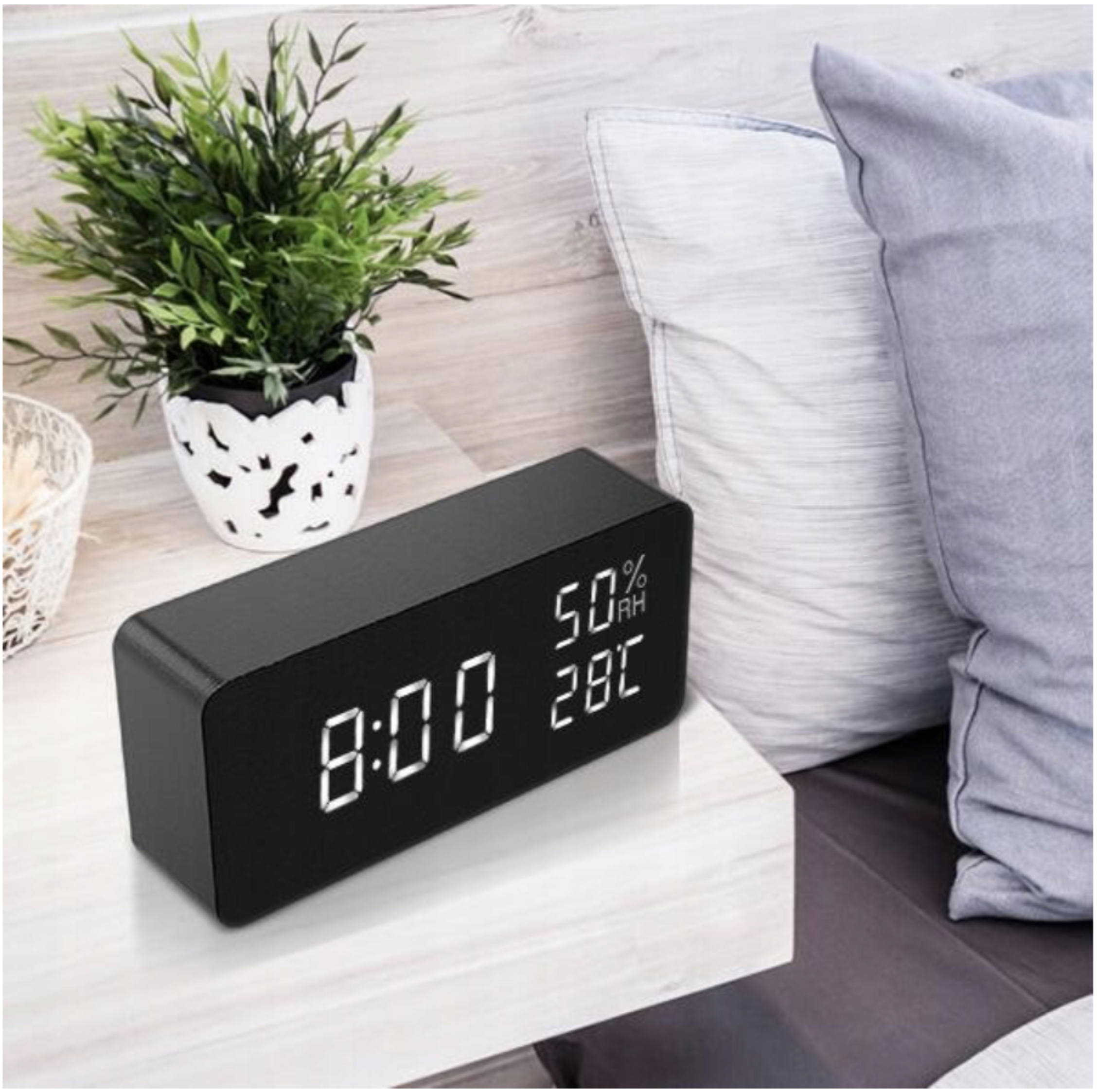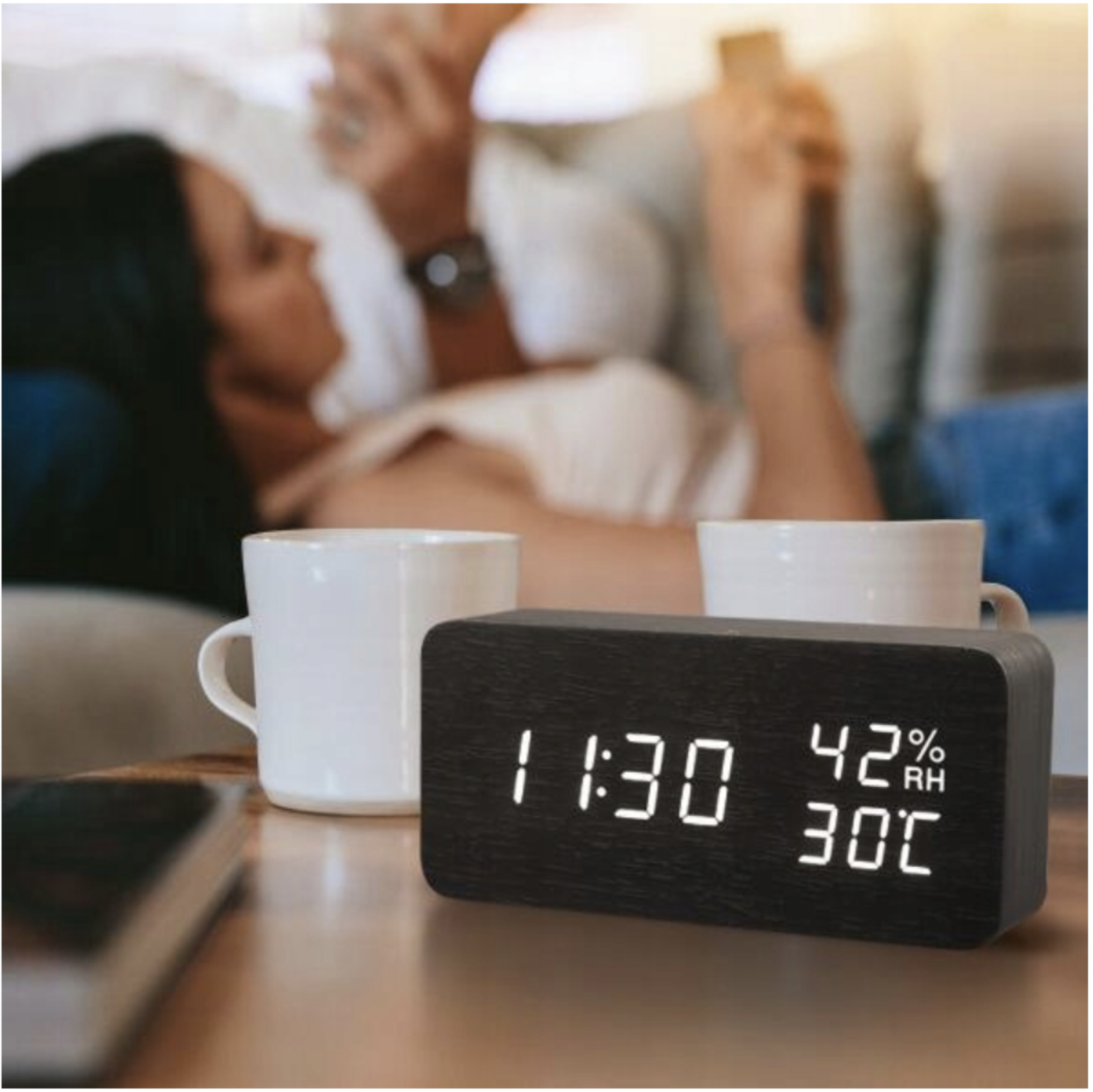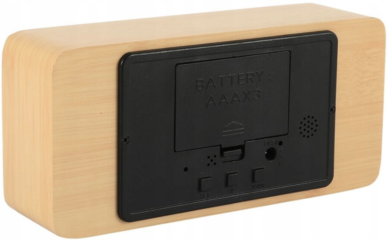 • Temperature measurement (degrees Celsius and Fahrenheit) • Humidity measurement • Clock and loud alarm clock in one • Built-in calendar • 3 alarm clock alarms • 3 levels of display brightness settings (light, medium and dark) • Sound control for energy saving • LED display on a wooden surface • Built-in USB port • In the color of natural wood • Two types of power supply (3x AAA batteries and USB cable) • Reset function • USB cable included in the set |