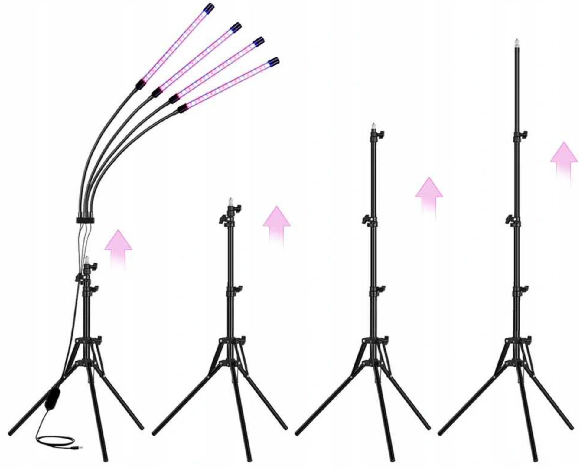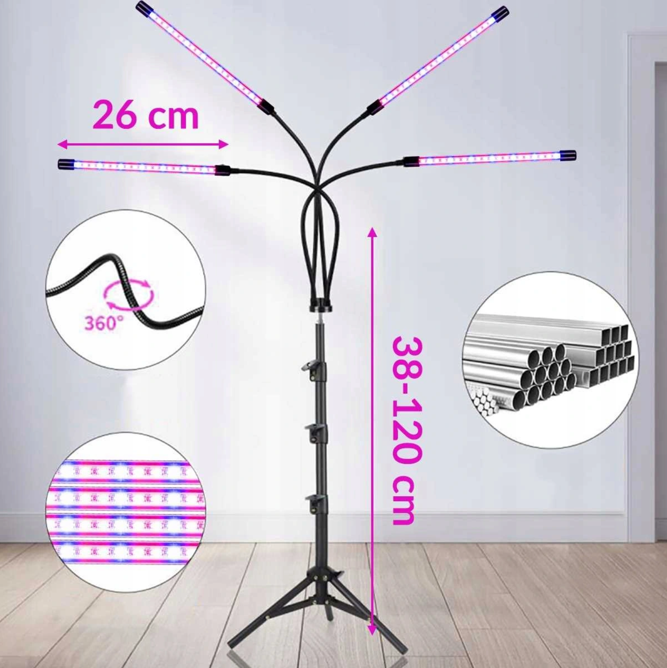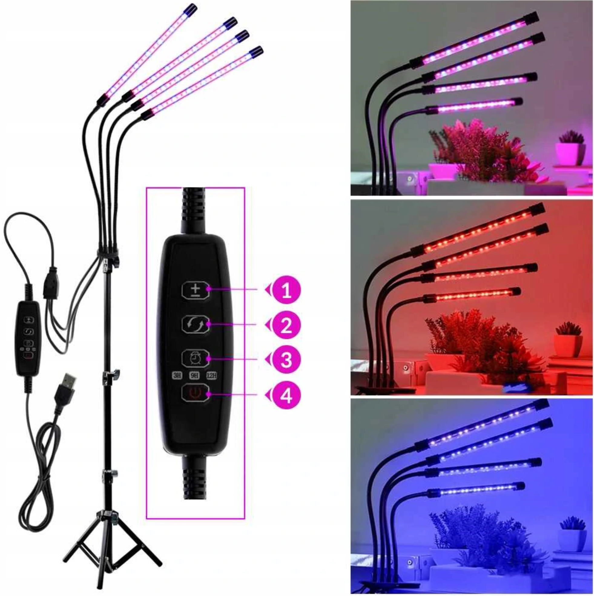 Plants should be properly cared for, especially in autumn and winter Growth is supported. With the LED plant lamp with four flexible heads and a tripod, you can make seedlings grow faster by using the set the appropriate wavelength.