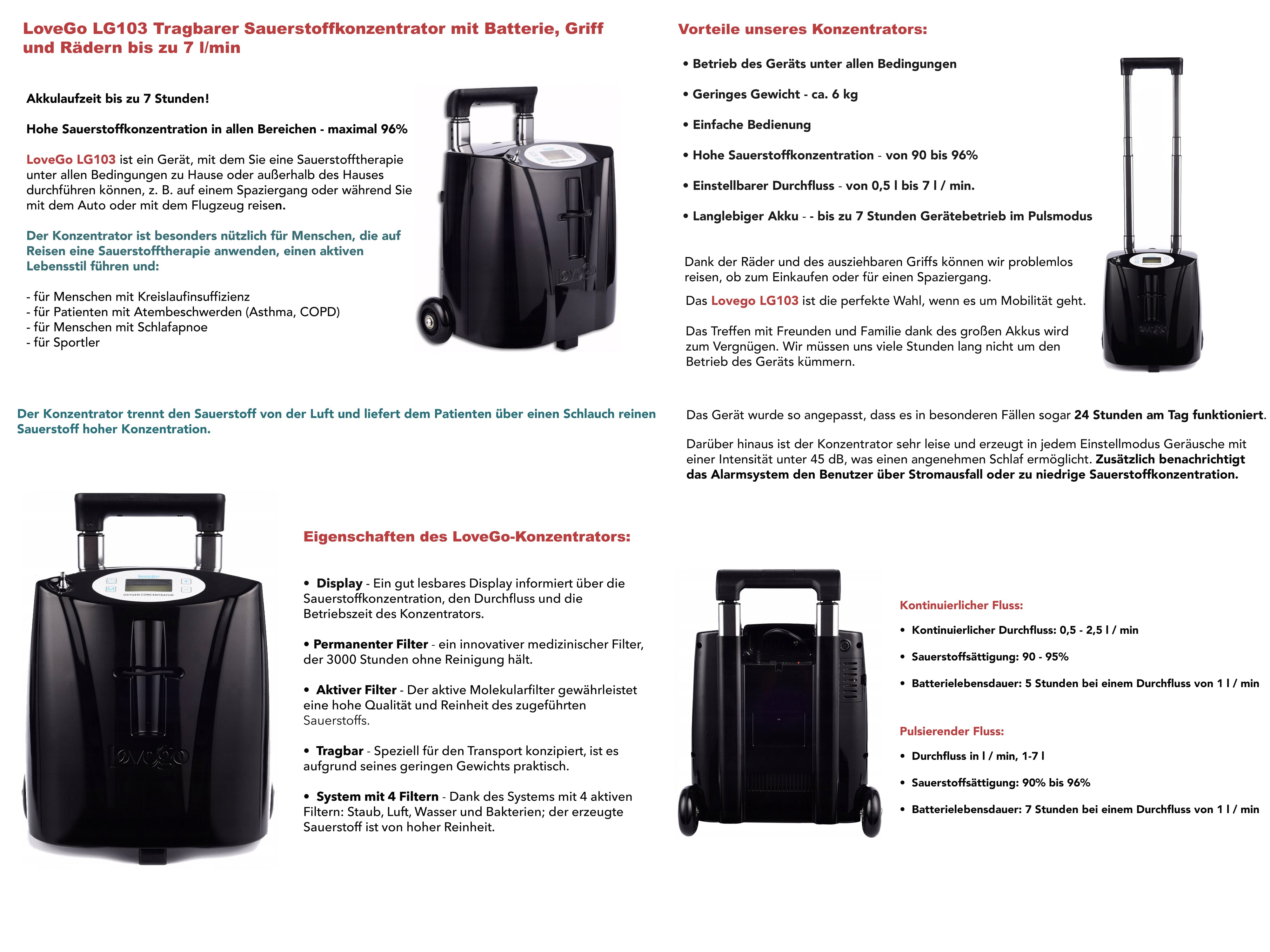 LoveGo LG103 Concentrador de oxígeno portátil con batería, asa y ruedas hasta 7 1/min |