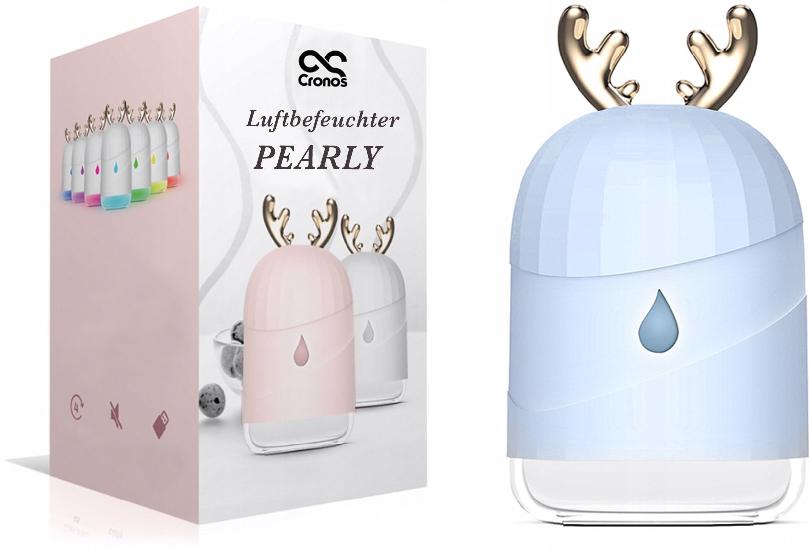 * Humidificador Cronos Pearly en azul *Cable de alimentación USB * Filtro de algodón * Manual de instrucciones en alemán |