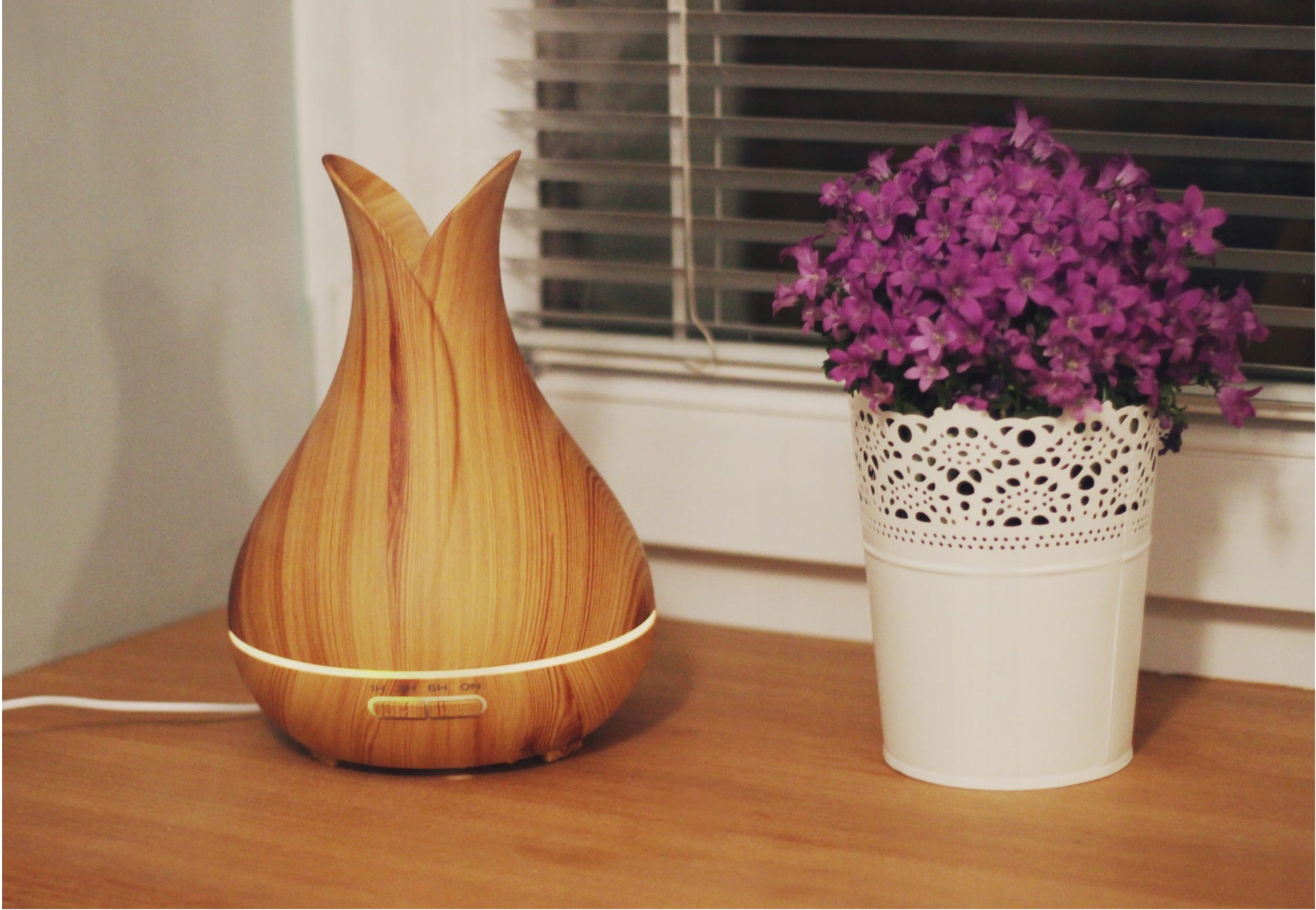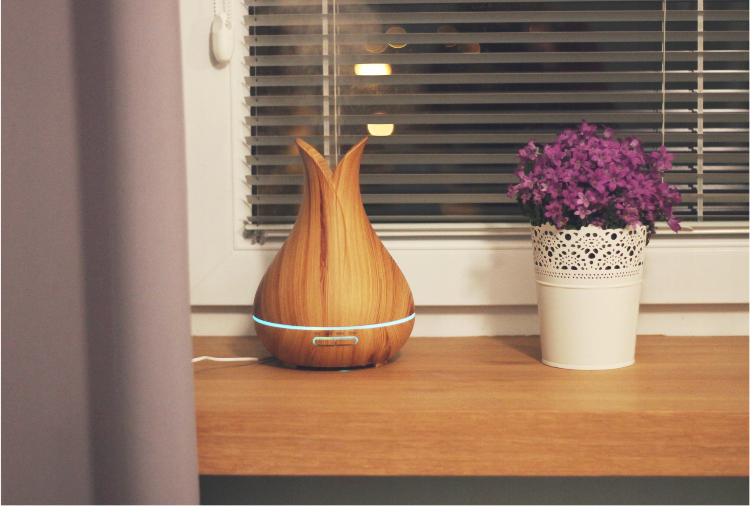 Un modelo único de humidificador ultrasónico 2 en 1 con difusor de aroma.