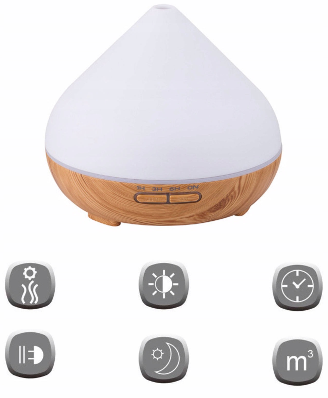 Ventajas del producto: • El último humidificador ultrasónico • Difusor de fragancias (aromaterapia) • Hermosa forma y acabado • Mobiliario natural con imitación madera. • Facil de manejar • Trabajo silencioso y eficiente • Mejora la calidad del sueño, la relajación. y regeneración • Muy útil en la sinusitis • La tira de LED emite luz: la capacidad de 7 colores para cambiar • Función de selección de retroiluminación: color, brillo • Tiempo máximo de trabajo: 1Oh • Función de configuración del tiempo de niebla: 1h / 3h / 6h / ON • Función Auto-off (apagado automático del dispositivo en caso de falta de agua) • Muy buena calidad del dispositivo. • Perfecto para dormitorio, salón, oficina, sala de espera, gimnasio, SPA, etc. |
