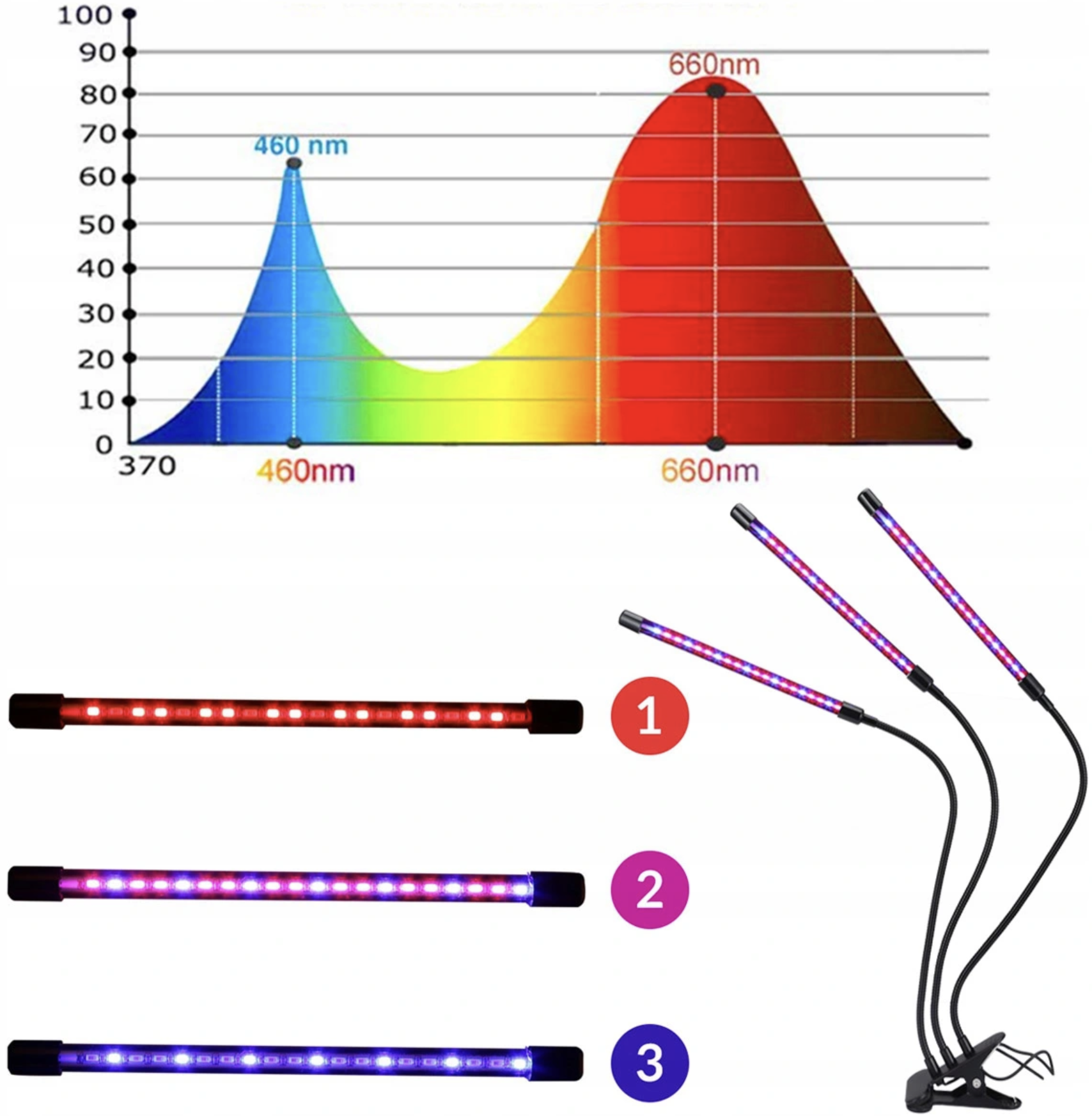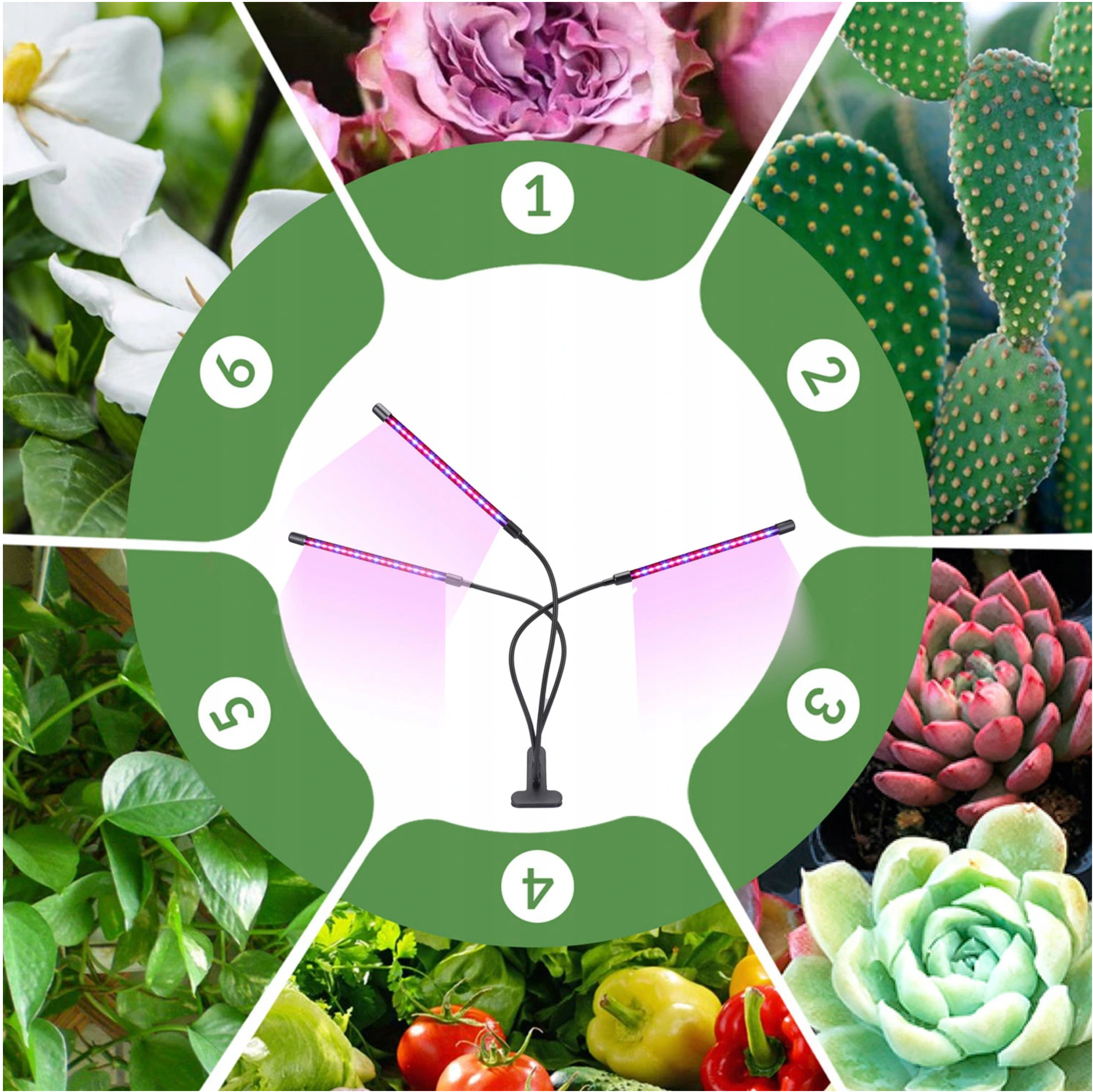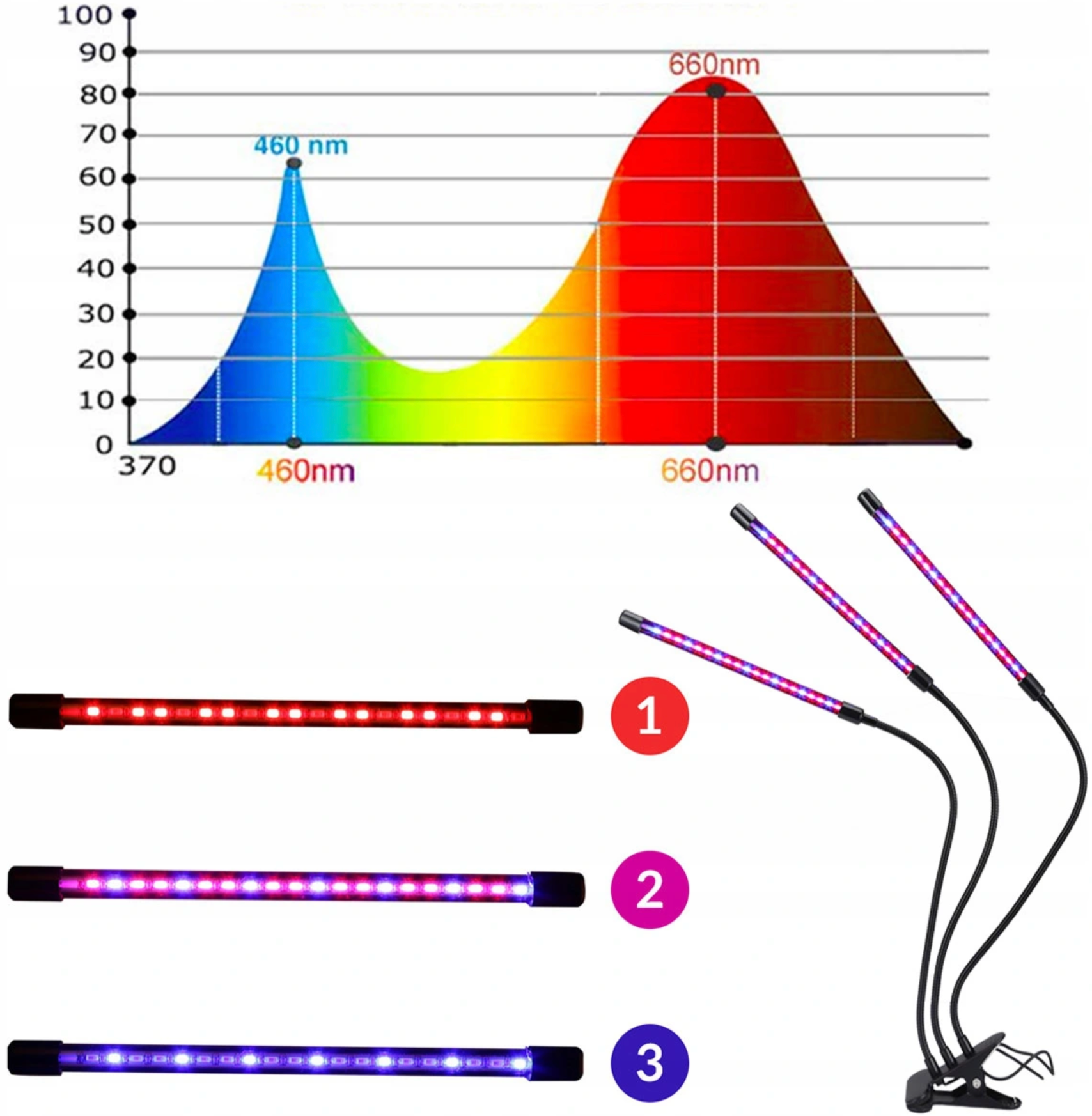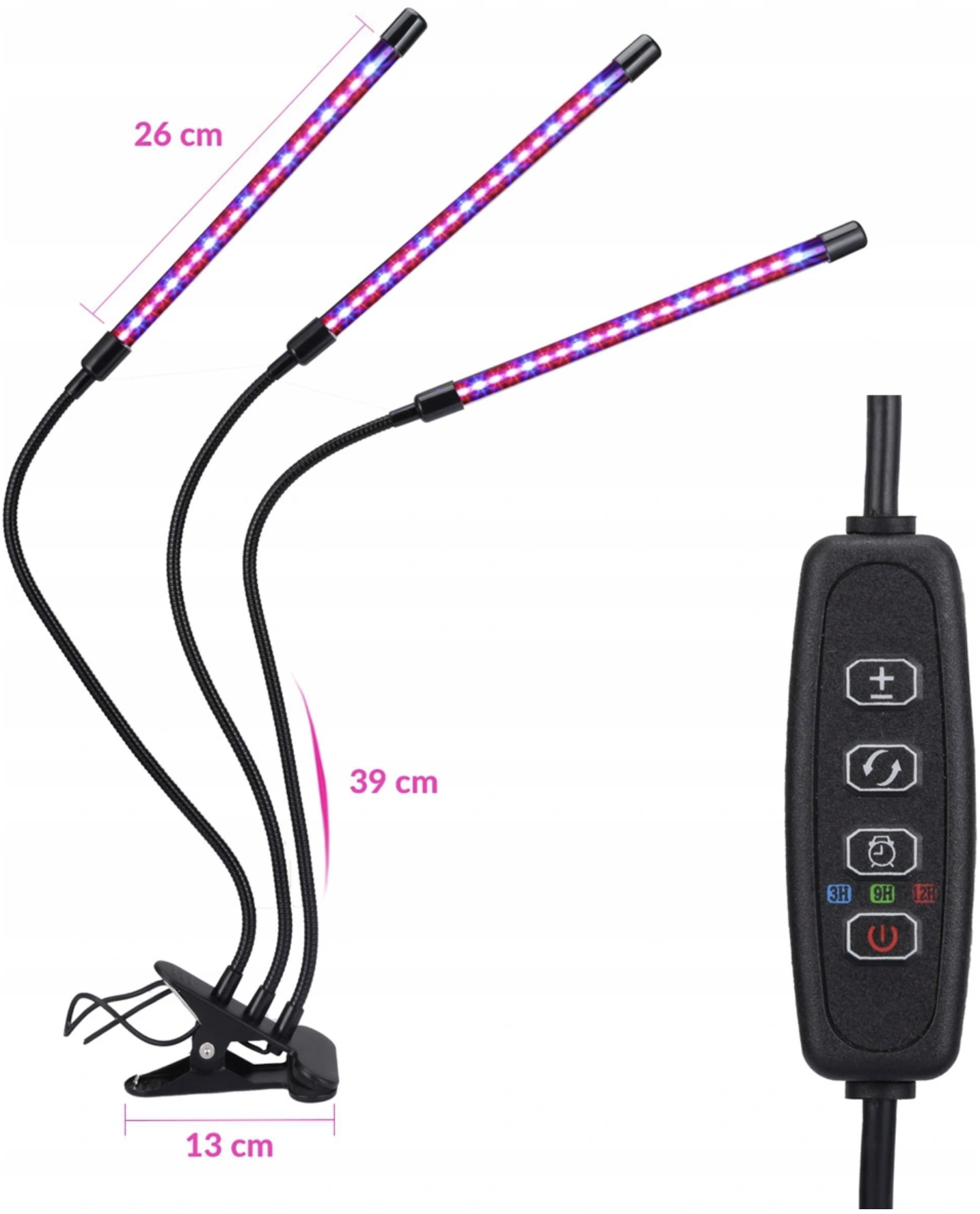 | Ventajas del producto: • 60 LED distribuidos en tres cabezales: 39 rojos y 21 azules • Careta acrílica que mejora la transmisión de luz. • amplio espectro de longitudes de onda de 380 a 720 nm • Apoyando todo el proceso desde la siembra hasta la cosecha. • Fácil instalación gracias al uso de un clip robusto • tres cabezales flexibles 360° • Alimentado por cable USB • la capacidad de ajustar el brillo de la luz (9 niveles) • 3 modos de exposición: luz mixta, luz roja, luz azul • adecuado para plantas con flores, hortalizas y plantas frutales • Temporizador incorporado 3, 9, 12 horas |