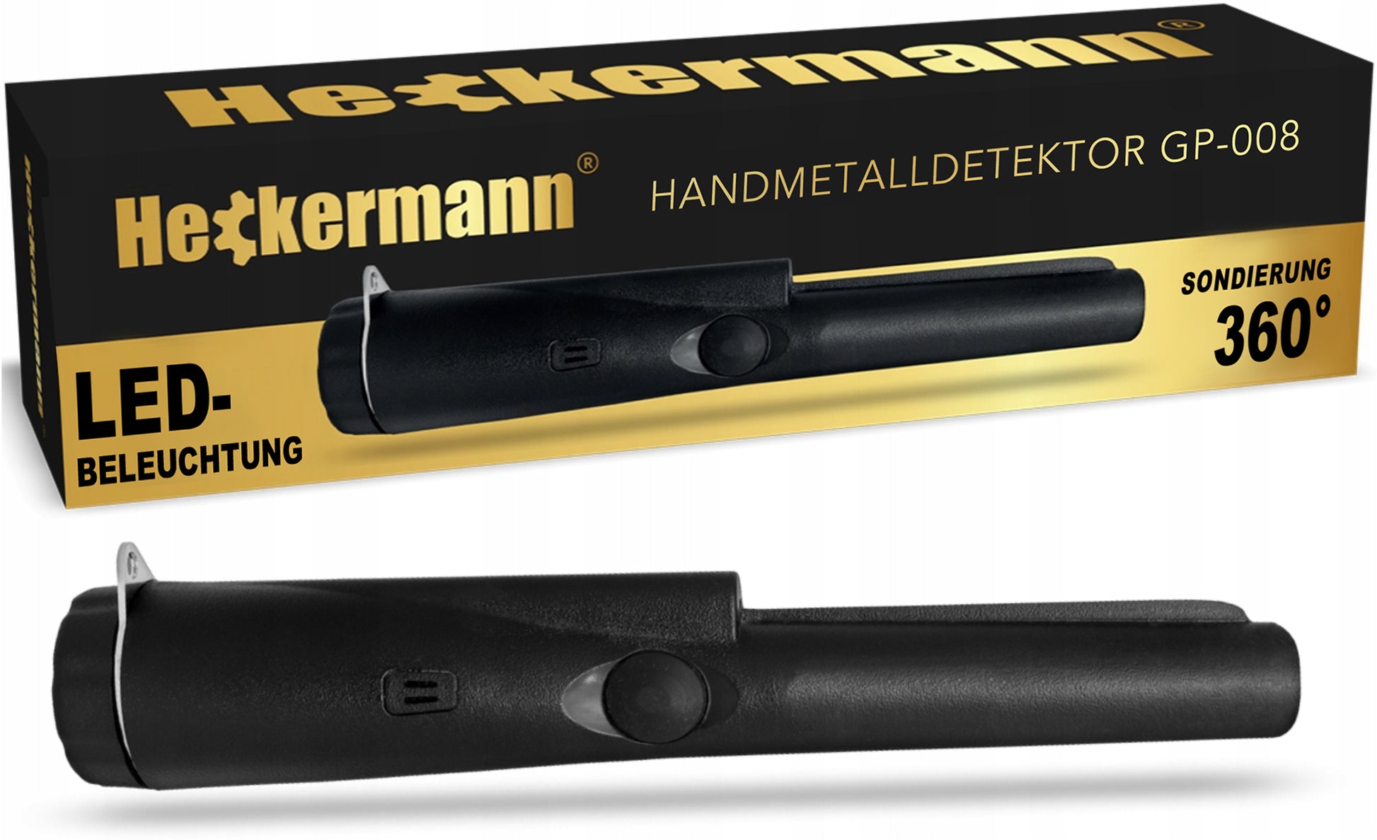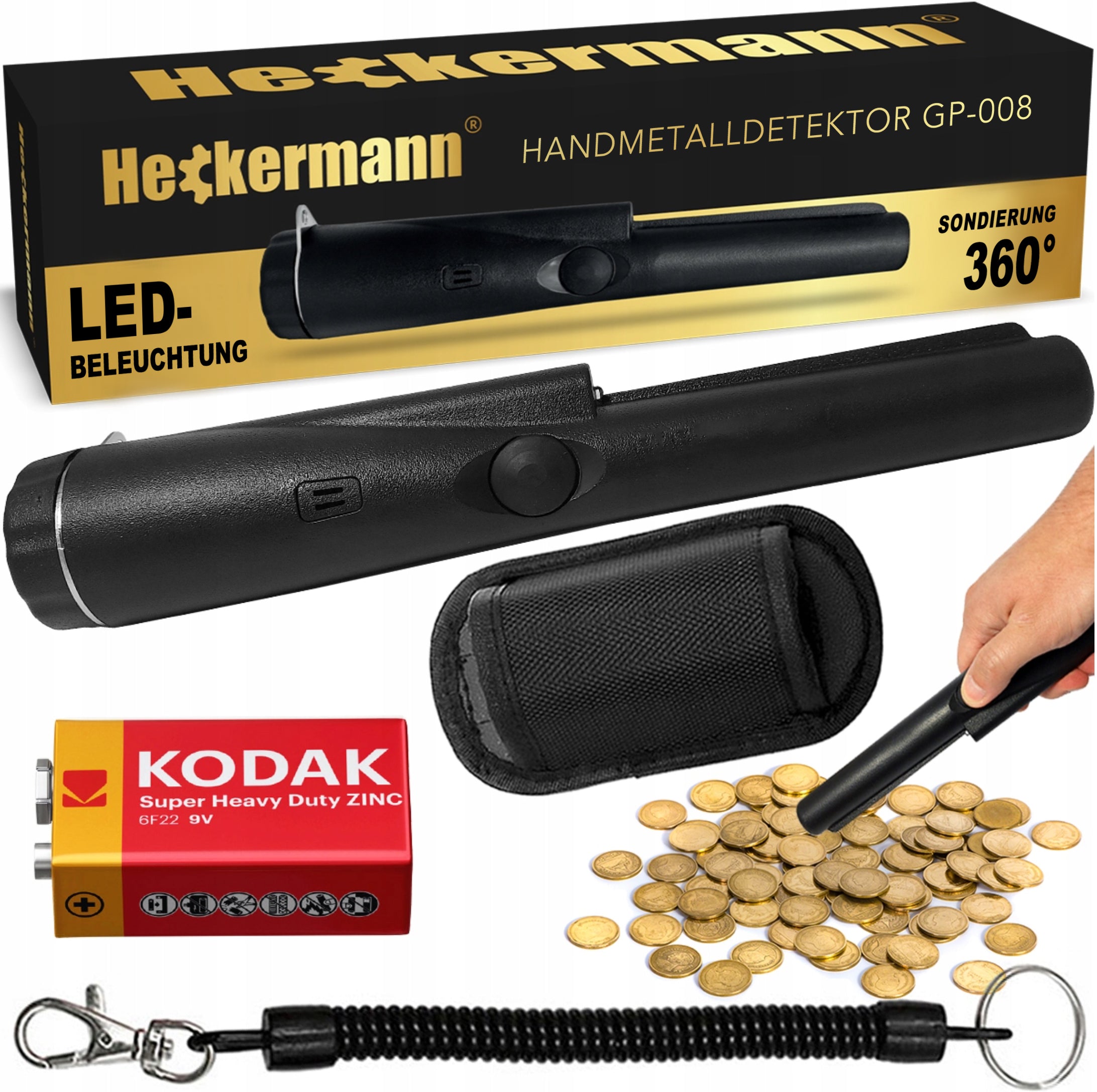 Detector de metales portátil CRONOS Heckermann 360° + batería de 9V + artículo gratis |