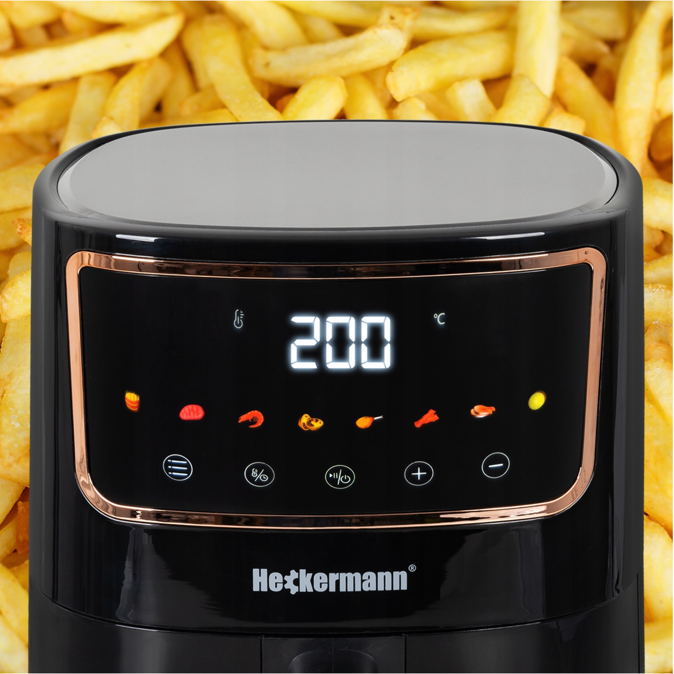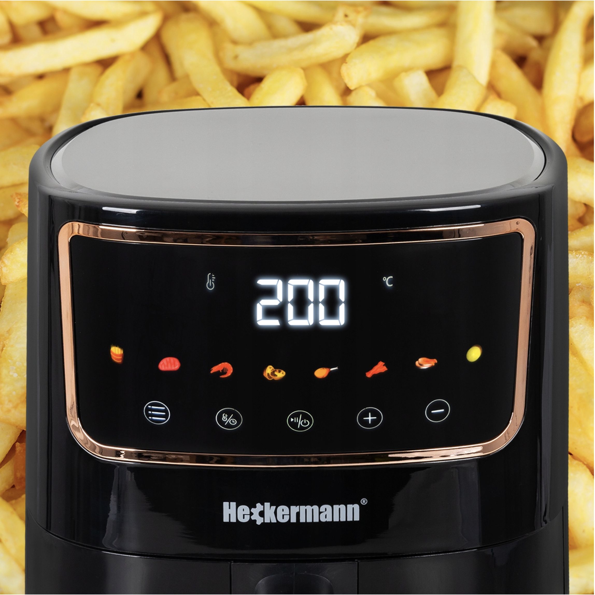 La freidora de aire caliente CRONOS Heckermann tiene una pantalla digital y