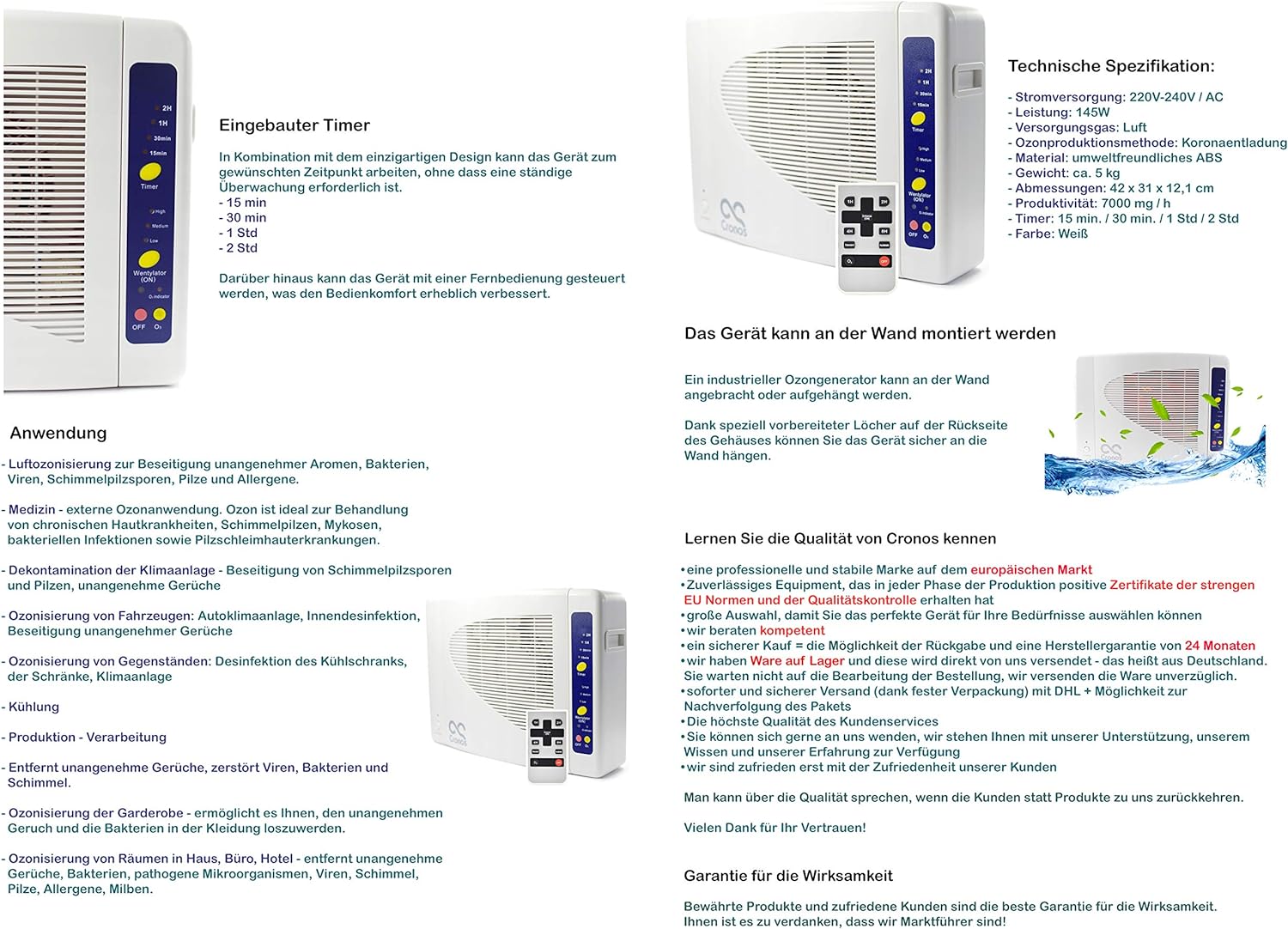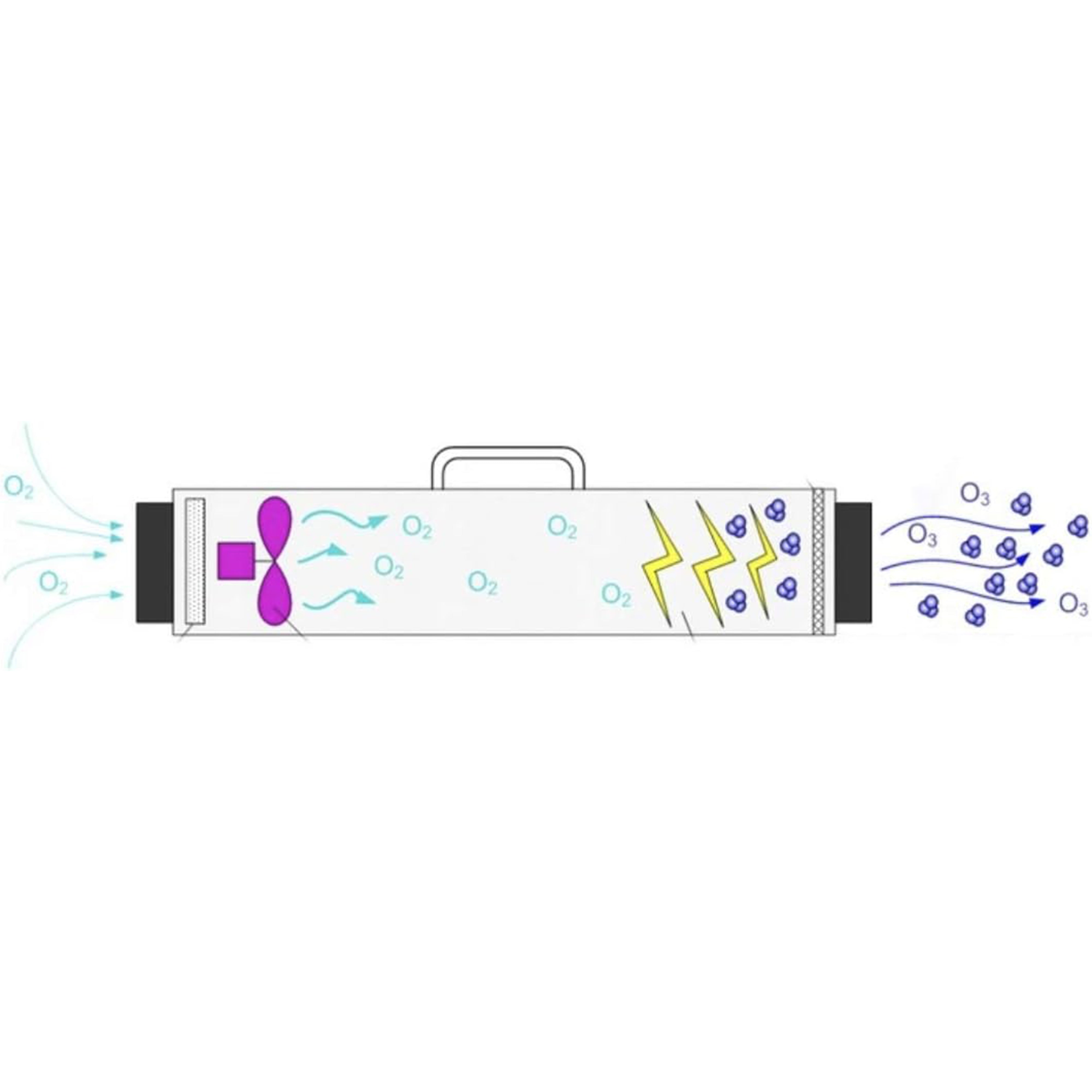 Dispositivo multifuncional para la purificación, ozonización y desinfección del aire más eficaz. Gracias a él Amplia aplicación y su altísima eficiencia de hasta 7000 mg/h, puedes usarlo Uso para el mantenimiento de sistemas de aire acondicionado y para la desinfección de locales industriales y domésticos.