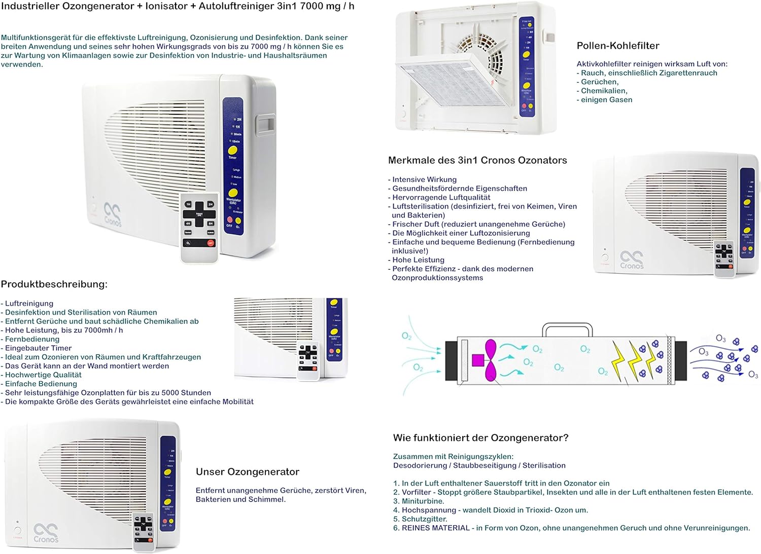 Generador de ozono industrial + ionizador + purificador de aire para coche 3en1 7000 mg/h