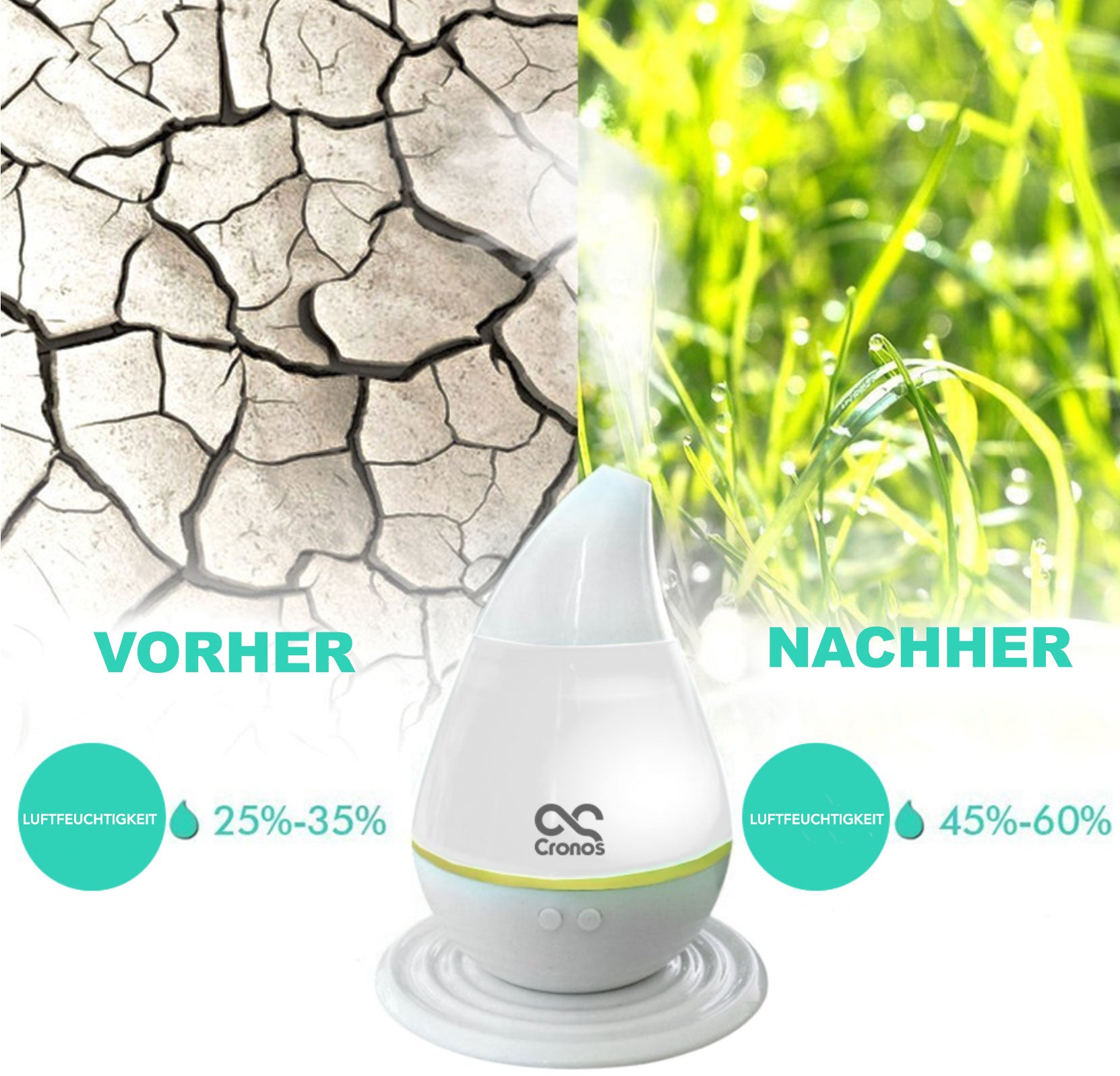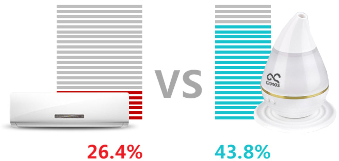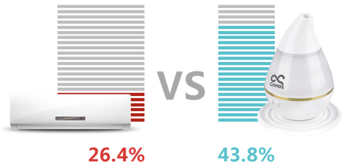 Te sentirás mejor gracias al humidificador CRONOS Blue Water. ¡Nuestro dispositivo aumenta la humedad hasta en un 35%!