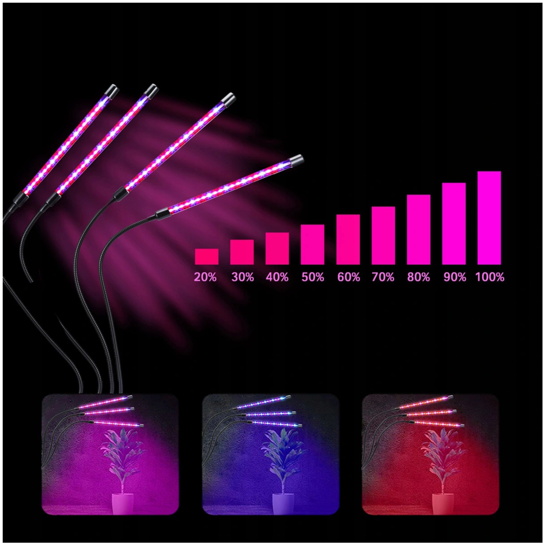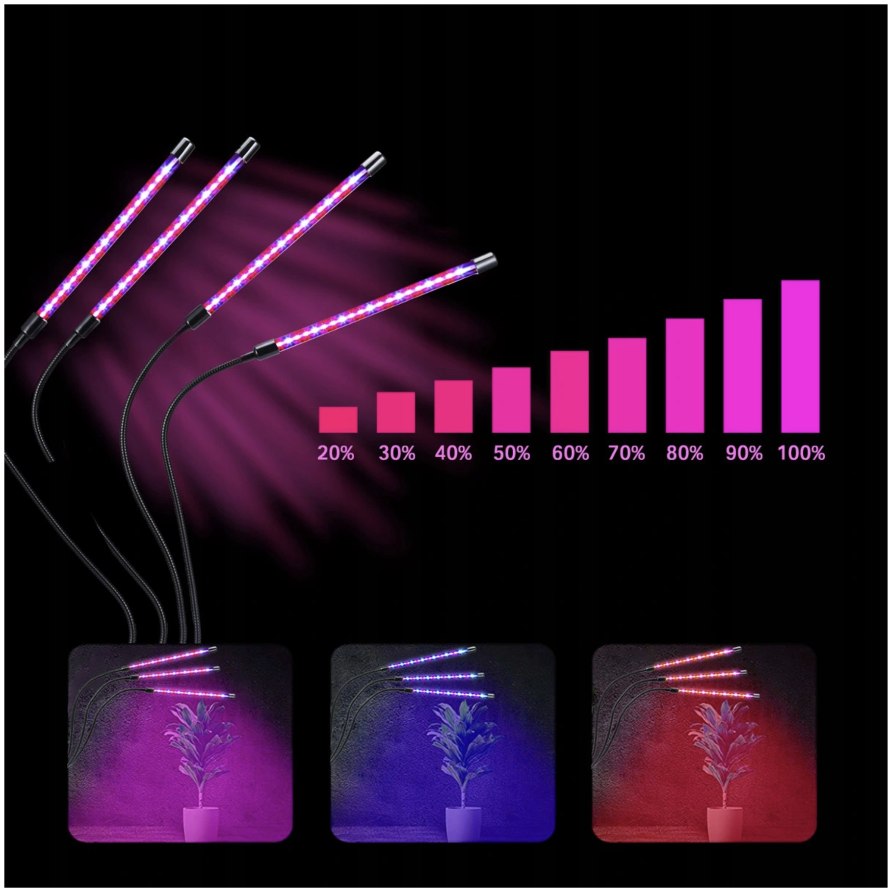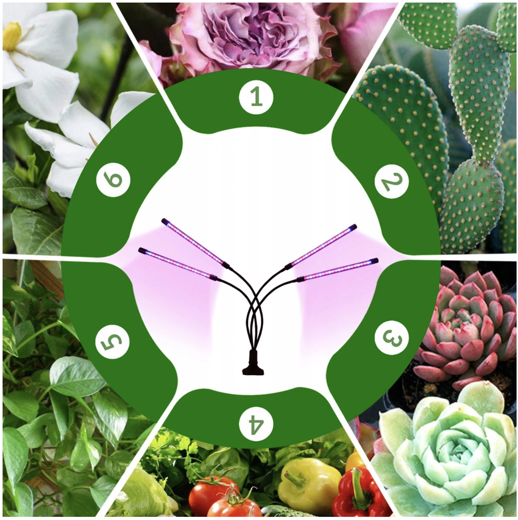 La lámpara LED para plantas con cuatro cabezales te permite ajustar la intensidad de la luz y