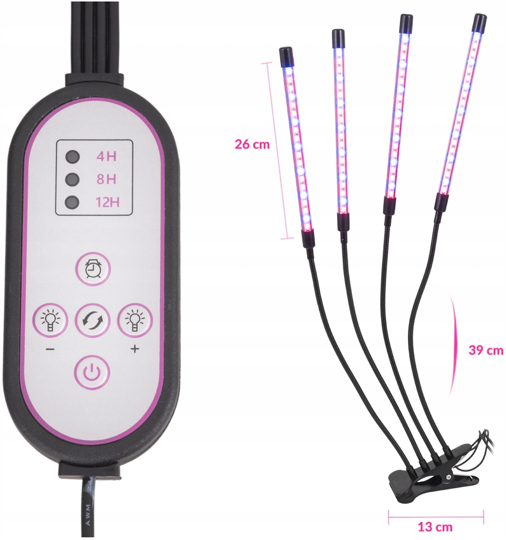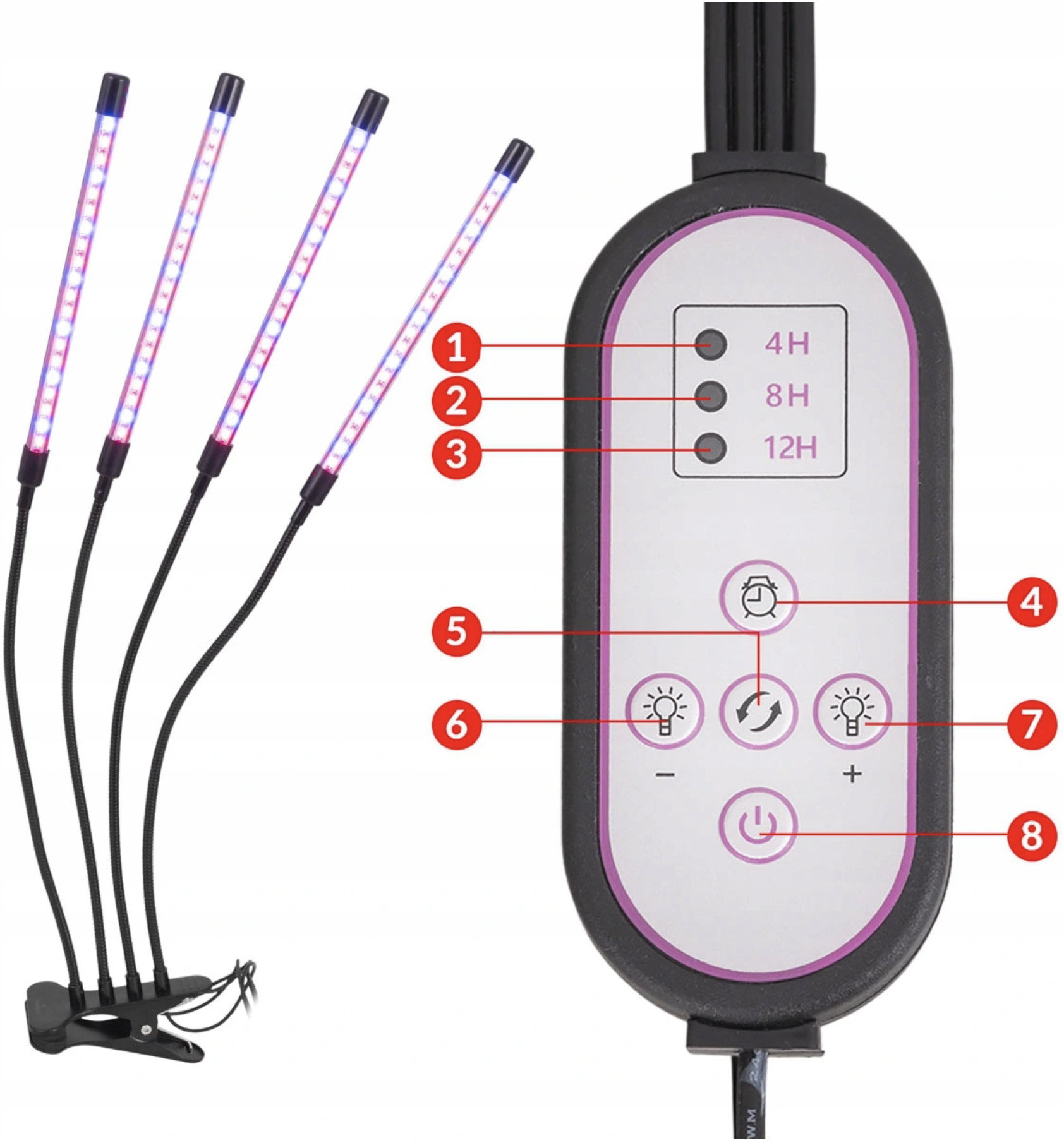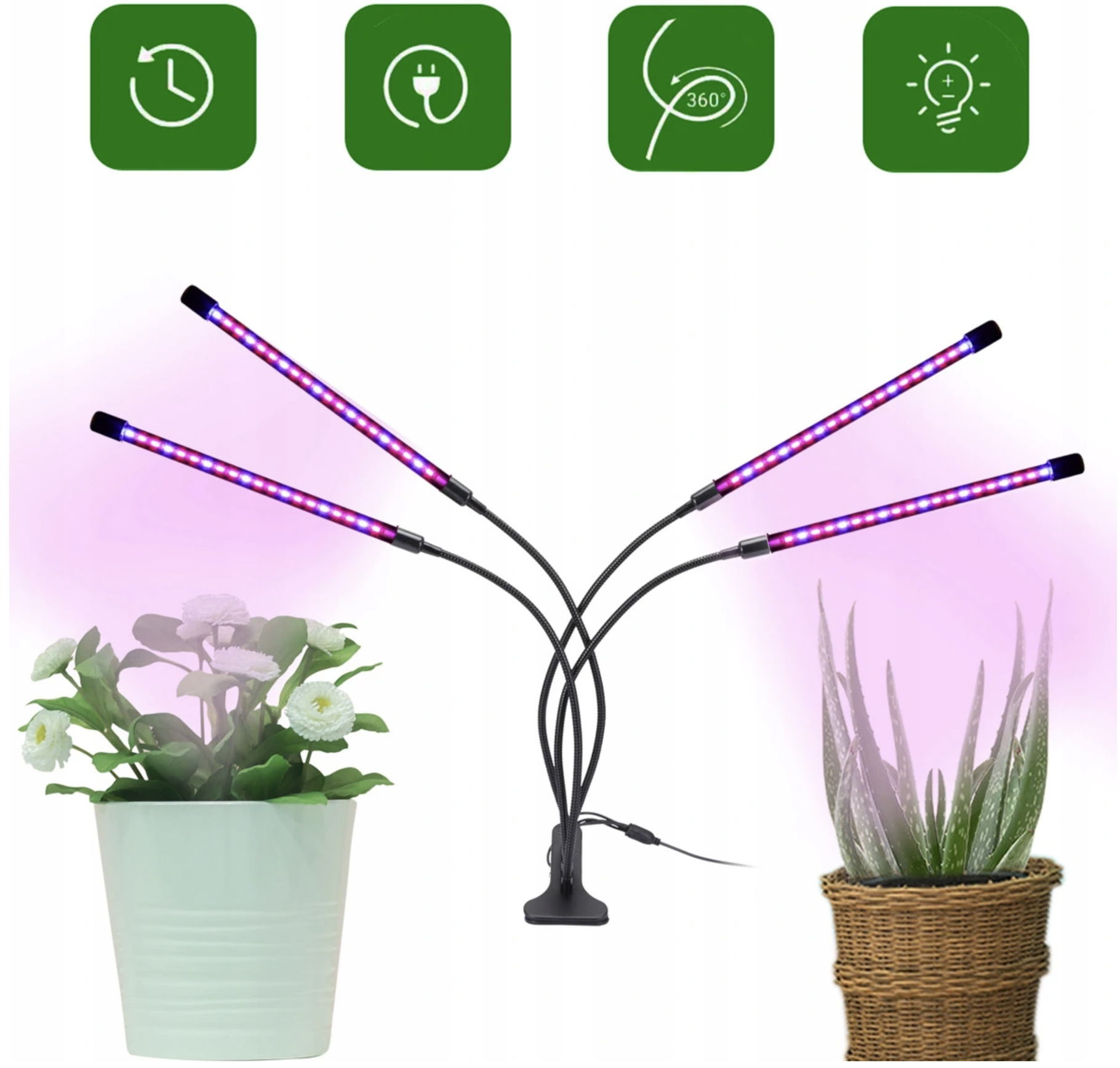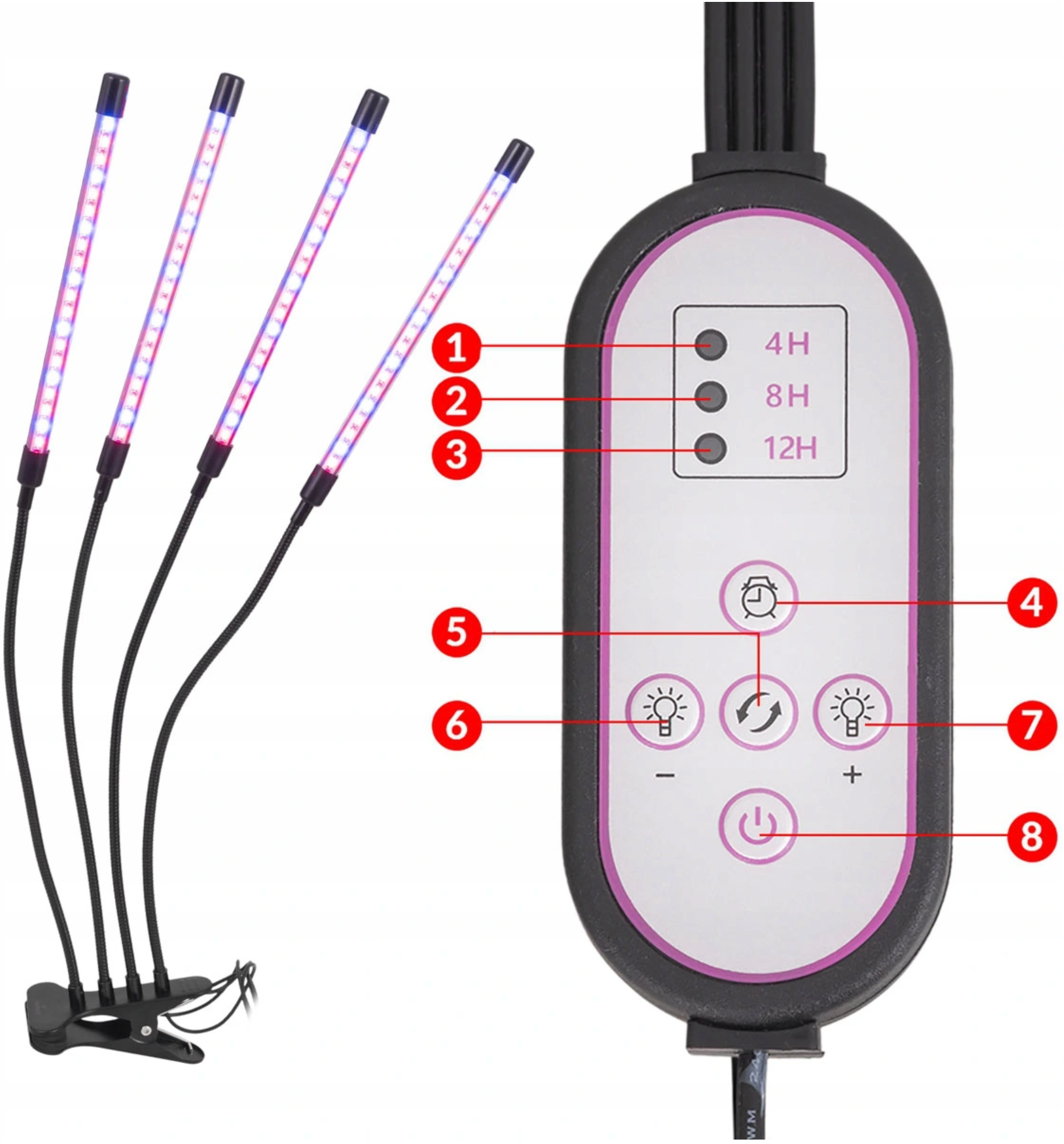 La lámpara LED para plantas con cuatro cabezales te permite ajustar la intensidad de la luz y