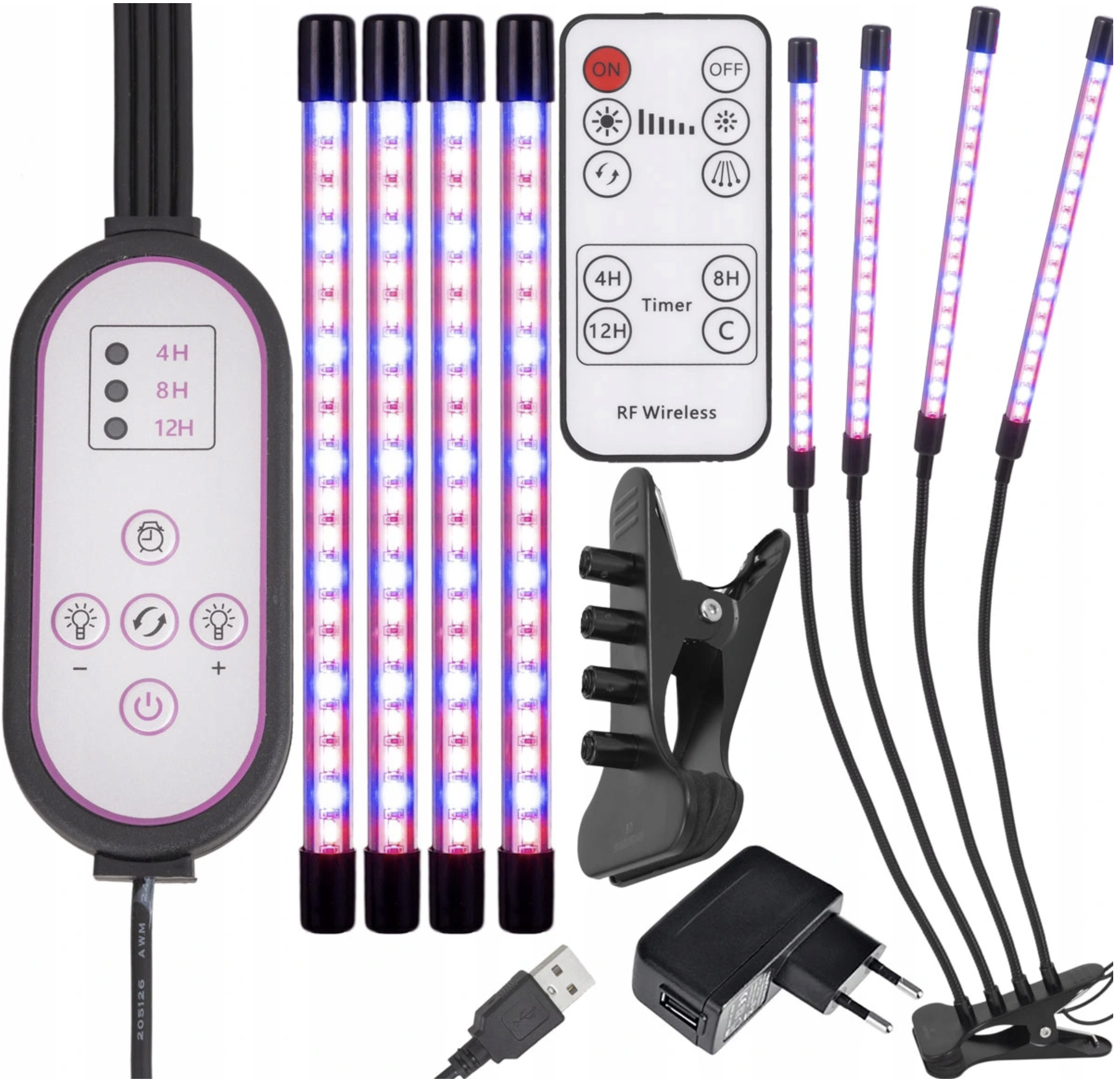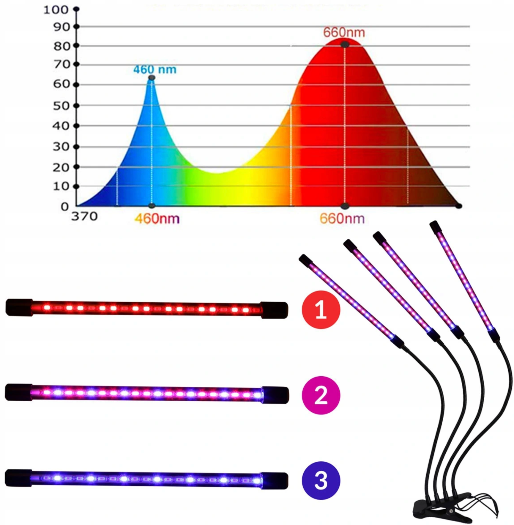 • 80 LED distribuidos en cuatro cabezales: 52 rojos y 28 azules • Careta acrílica que mejora la transmisión de luz. • amplio espectro de longitudes de onda de 380 a 720 nm • Apoyando todo el proceso desde la siembra hasta la cosecha. • Fácil instalación gracias al uso de un clip robusto • tres cabezales flexibles 360° • Alimentado por cable USB • la capacidad de ajustar el brillo de la luz (9 niveles) • 3 modos de exposición: luz mixta, luz roja, luz azul • adecuado para plantas con flores, hortalizas y plantas frutales • Temporizador incorporado 3, 9, 12 horas • Mando a distancia incluido en el set. |