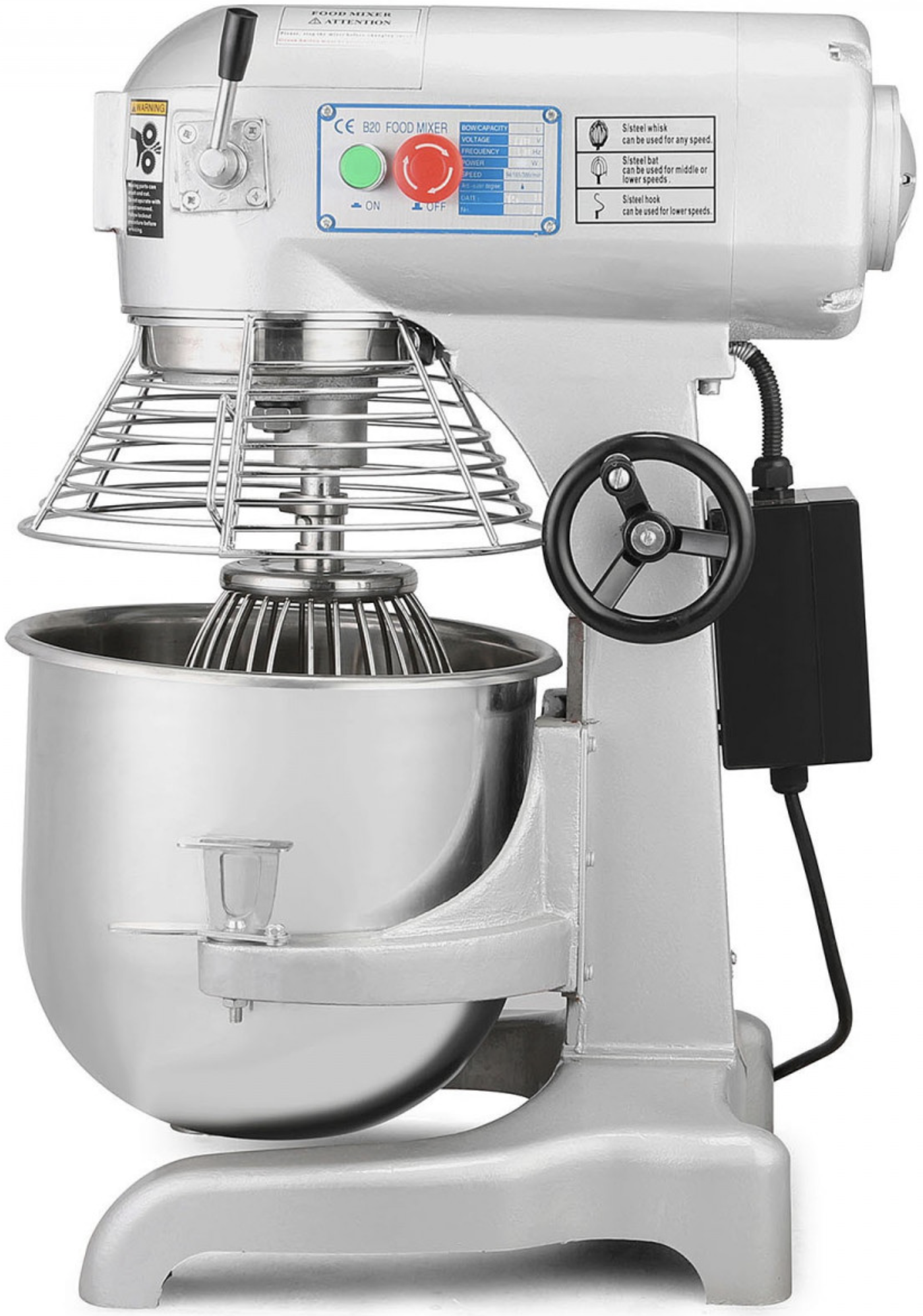 • Puissance : 1100 W. • Capacité du bol : 30 L • 3 vitesses : 94/165/386 tr/min • Accessoires pour mélanger : fouet, batteur à crochet, pétrin • Poids : 105kg • Dimensions : 426 x 316 x 666 mm • Exécution : Acier inoxydable de haute qualité • Tension nominale : 110 V 60 Hz/ 220 V 50 Hz • Bouton ON / OFF |