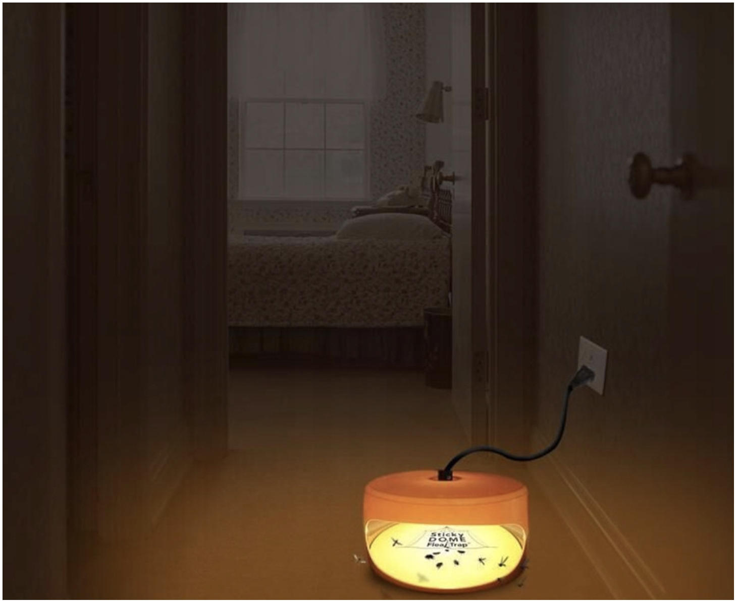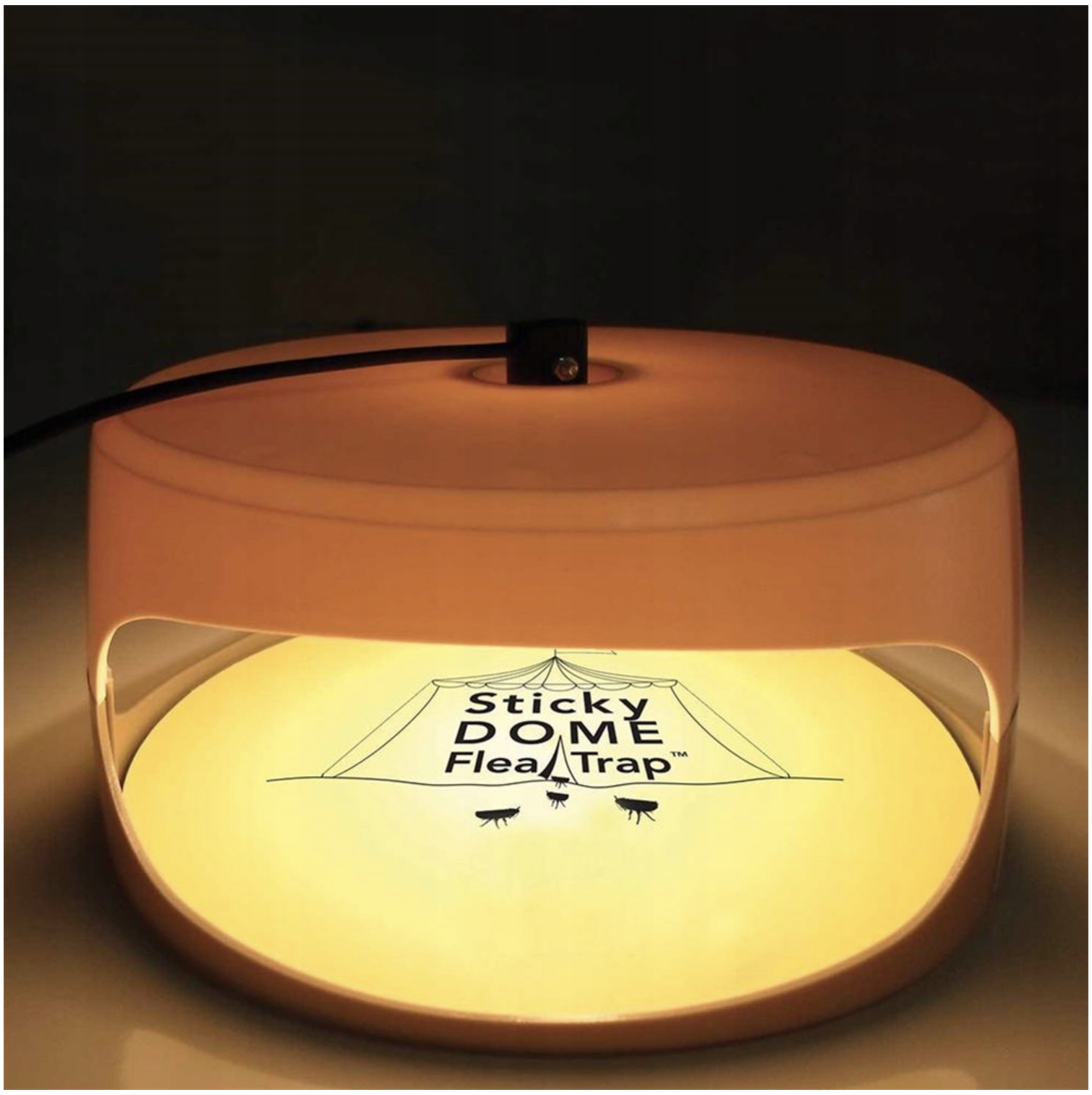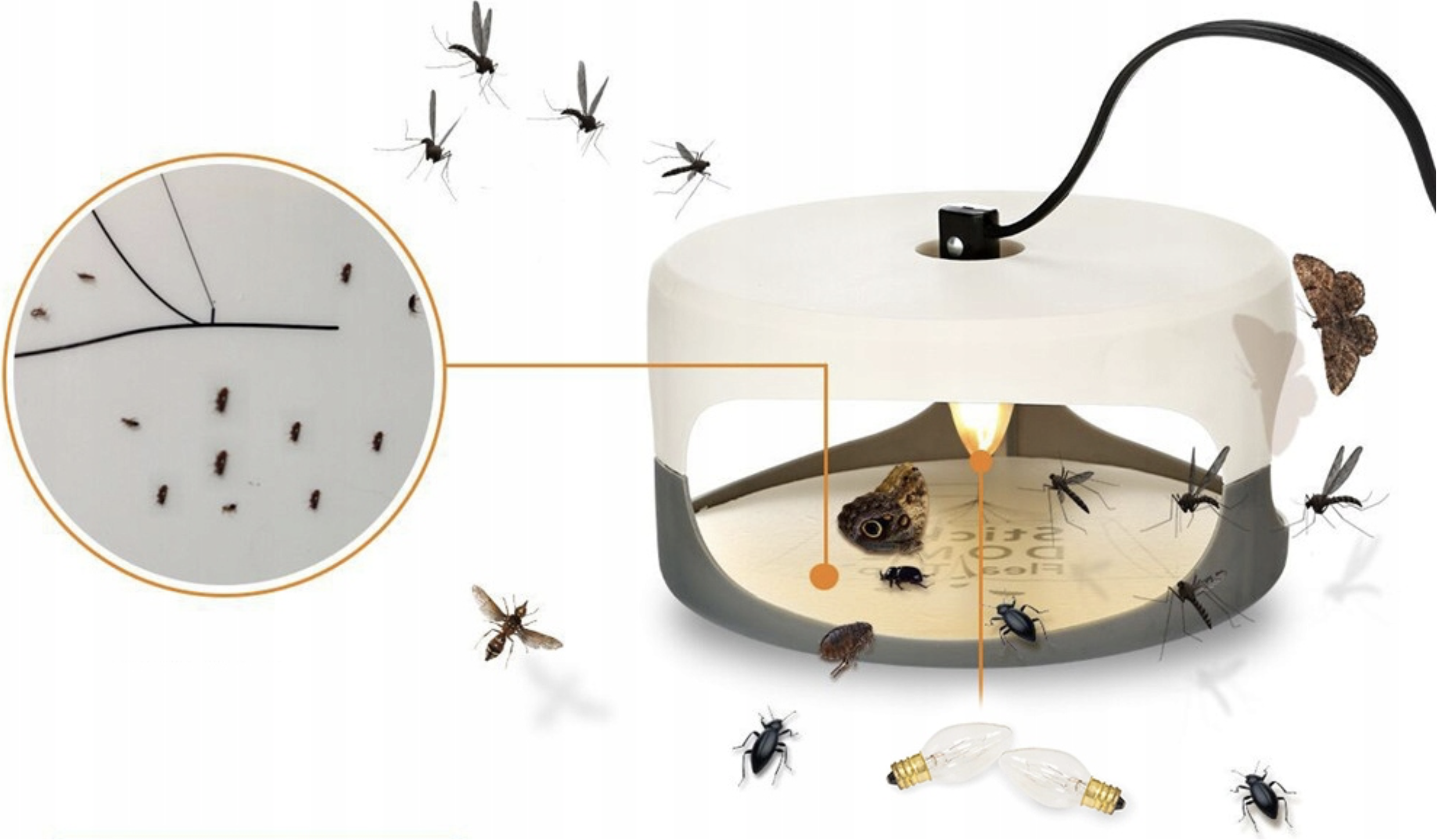 efficace uniquement grâce à l'adhésif puissant à la base, mais aussi grâce à l'ampoule intégrée, qui attire les puces et autres insectes volants par sa chaleur et sa lumière.
