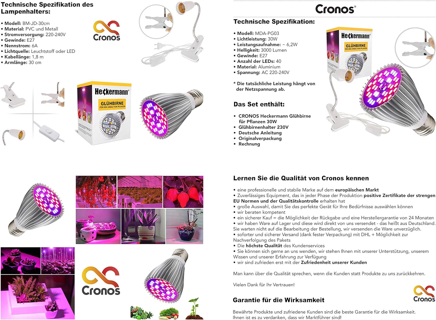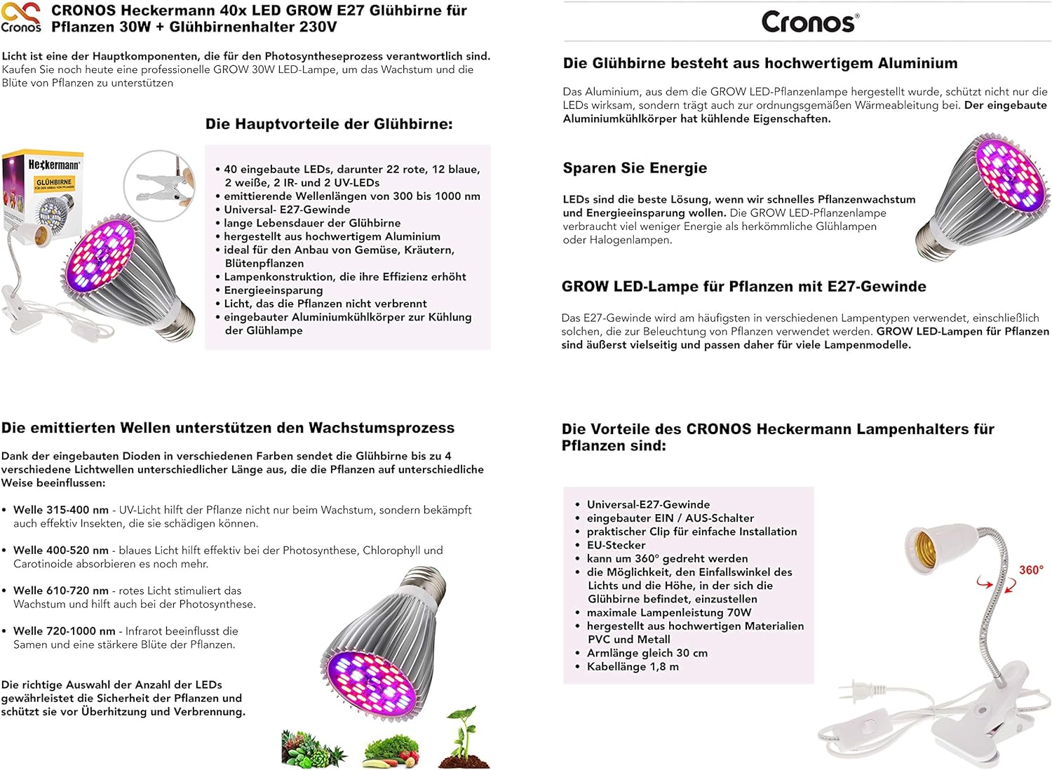 CRONOS Heckermann 40x Ampoule LED GROW E27 pour plantes 30W + douille 230V