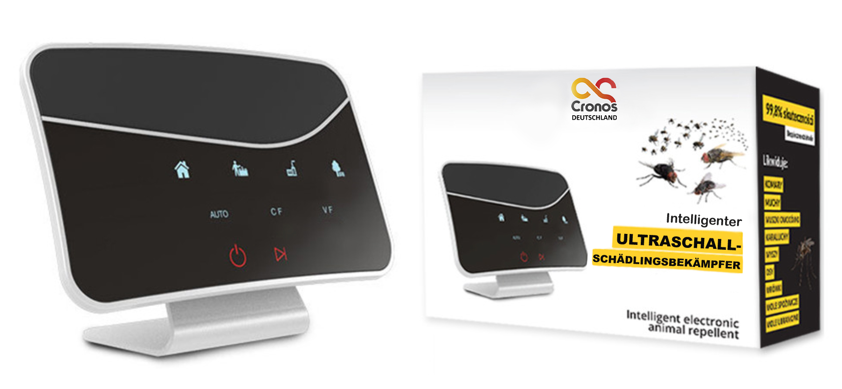 Il compito principale degli ultrasuoni è attenuare e disturbare i parassiti che non possono annidarsi in casa e potenzialmente attaccare. Il repellente per topi, ratti e insetti Cronos è stato dotato anche di funzione deterrente ottica (ratti) e termica (zanzare).