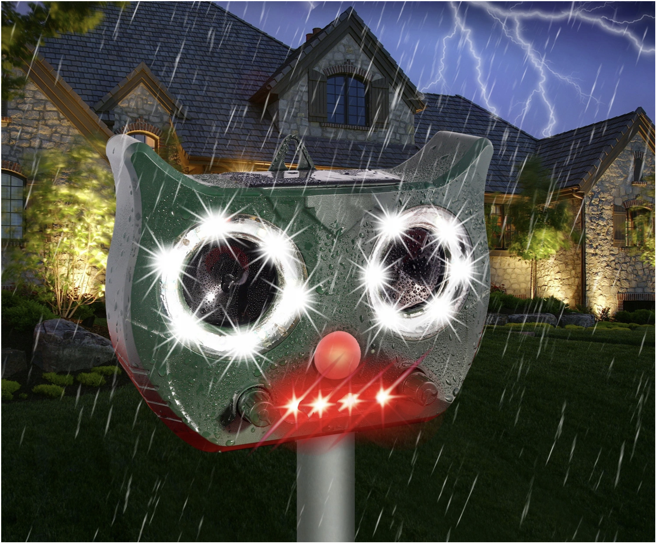 Due modi per caricare il tuo dispositivo Il repellente per animali può essere alimentato da batterie, che si ricaricano nelle giornate soleggiate grazie al pannello solare fissato nella parte superiore del dispositivo. Il set include anche un cavo USB che puoi utilizzare per caricare il dispositivo. Acustico e visivo deterrenza Oltre agli ultrasuoni, il repellente è dotato di potenti lampade a LED di colore: bianco e rosso, che spaventano efficacemente gli animali illuminandosi. I forti rumori possono spaventare anche gli uccelli e i cinghiali più coraggiosi. |