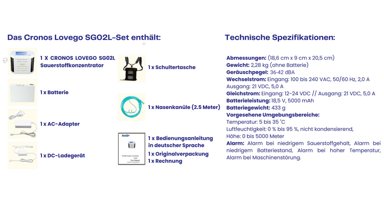 - CRONOS LOVEGO SG02L Sauerstoffkonzentrator - Sauerstoffkonzentration 95% - Kleinstes 2000ml Sauerstoffgerät der Welt - Echte 5 Liter/Min Effizienz - Deutscher Hersteller - Medizinisches MDR Zertifikat - FAA Flug Zulassung